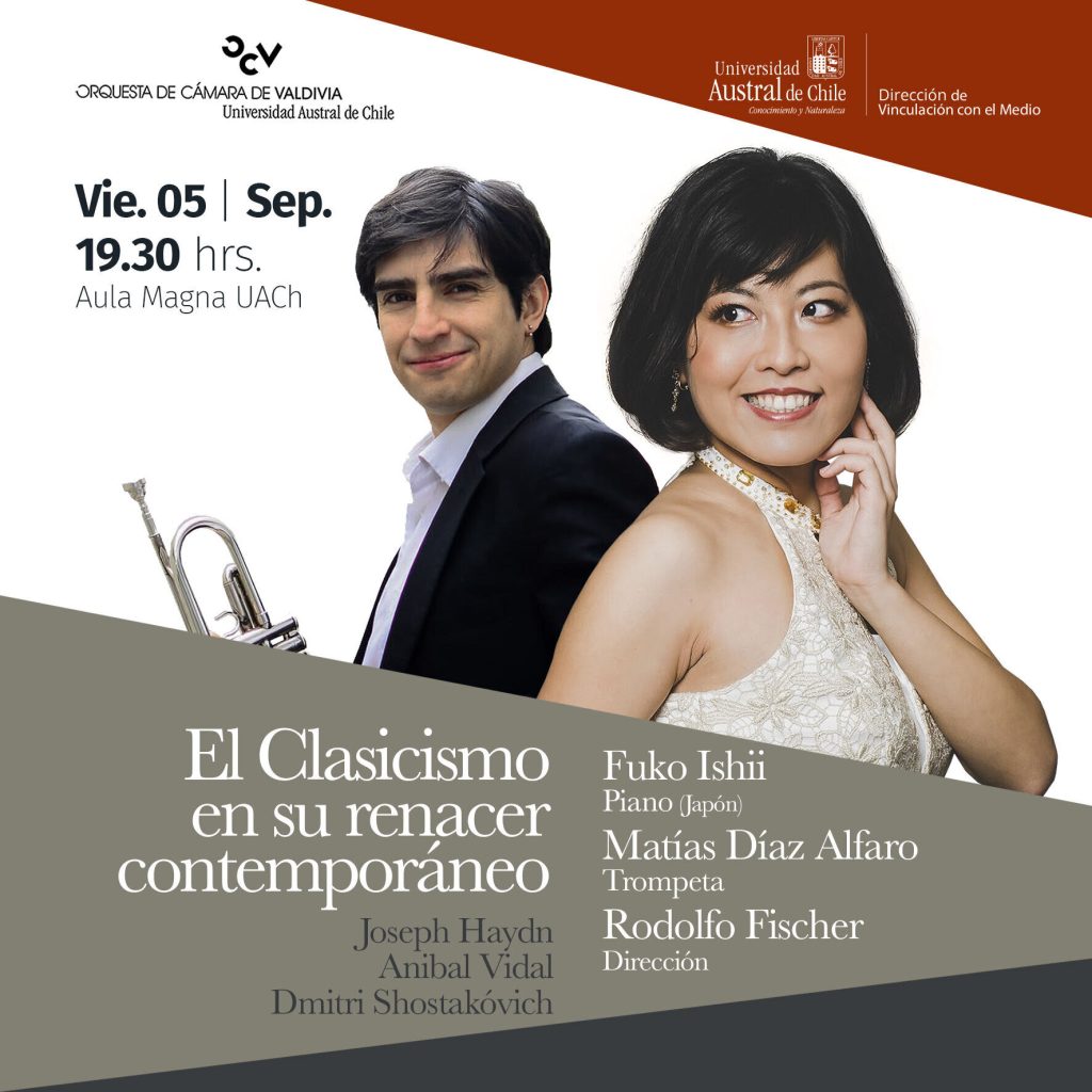 Valdivia se prepara para un evento musical de talla mundial. La Orquesta de Cámara de Valdivia (OCV) presenta un concierto estelar que une la tradición y la modernidad con la llegada por primera vez a la ciudad de la destacada pianista japonesa Fuko Ishii. La ganadora del Concurso Internacional Edvard Grieg 2022 se une al talento del trompetista chileno Matías Díaz Alfaro bajo la dirección de Rodolfo Fischer. Juntos, llevarán al escenario un repertorio que es una verdadera travesía sonora.