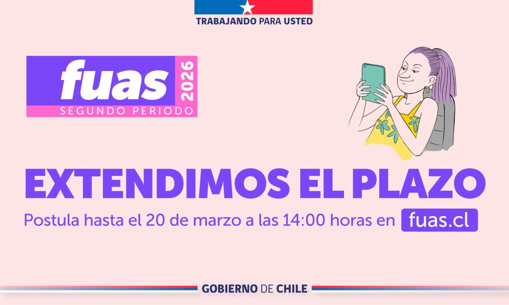 CHILE. – El Ministerio de Educación informó que el plazo para postular a beneficios estudiantiles 2026 fue extendido hasta las 14:00 horas del viernes 20 de marzo, dirigido a quienes ingresarán a la educación superior o deseen mejorar su actual beneficio.